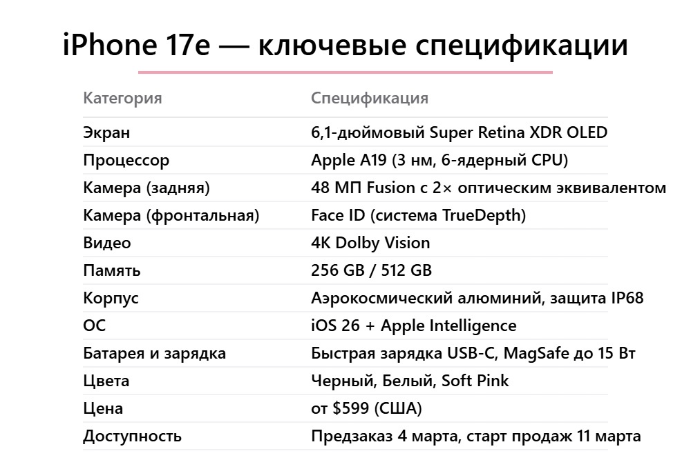 Apple представила iPhone 17e - самый дешевый в линейке