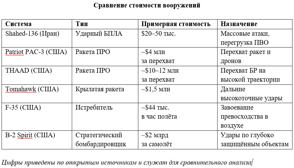 Подытоживая, можно сказать, что конфликт между США, Израилем и Ираном - это не только обмен ударами, но и испытание новых моделей ведения войны. Сегодня на Ближнем Востоке формируется будущий стандарт вооружённых противостояний: дроны против ракет, массовость против технологий, арифметика против мощности. И исход этой "битвы систем" может определить облик глобальной безопасности на годы вперед.