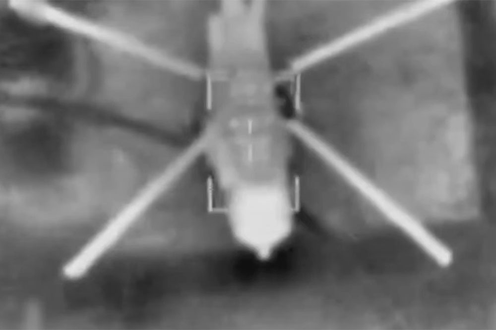 Происходит сильный взрыв, но лопасти винтов остаются на месте, как, впрочем, и само изображение этой цели. Обычно после таких попаданий конструкции сильно деформируются, техника начинает гореть, а здесь даже нет намека на какие-то повреждения. Такая неуязвимость объясняется просто - "семнадцатый" очень искусно нарисован, причем специальной краской, которая отсвечивает в тепловизионном канале прицела.