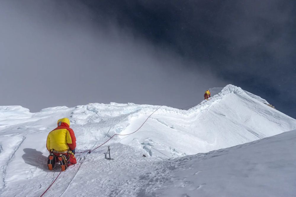 Виталий Шипилов: У нас большой опыт, и сидячая ночевка - не первая в жизни. Раз уж мы там оказались, надо было не жаловаться, а выходить из положения. Но эта ночевка вытянула силы и притормозила нас. Когда добрались до вершины, испортилась погода. Мы даже не смогли собраться вместе: если бы первые стали ждать, они бы сильно замерзли. Нас сдувало с этого гребня. Налетела какая-то чернота, ветер влупил так, что мы прижались к земле, было трудно дышать. Никакой эйфории, групповых фото - не до этого. Секунд двадцать на вершине - и вниз. Единственная мысль - как побыстрее уйти, безопасно спуститься. Я снял рукавицу и попытался включить экшен-камеру. Пальцы обморозились моментально, потом кожа вздулась волдырями, болела. Но впереди был спуск, надо терпеть.