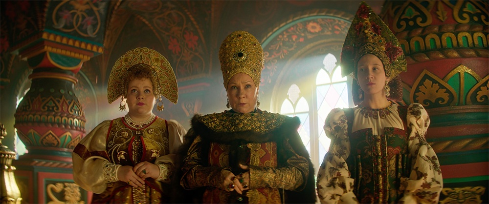 Кто-то из блогеров считает роскошные костюмы единственным достоинством фильма, а кто-то утверждает, что они взяты напрокат в сельском клубе - этот трогательный разнобой критериев лучше всего характеризует профессиональный уровень критиков-добровольцев. А самое веское обвинение: посмели Пушкина дописать. Встречный вопрос: а почему - нет? Вон сколько отсебятины, приспосабливая сказку к требованиям жанра, позволил себе Владимир Бельский, либреттист оперы Римского-Корсакова - не менее классической, чем сама сказка. Да и как в полнометражном фильме обойтись текстом Пушкина, если он предельно лапидарен? Там, где у поэта в паре строф спрессовано стремительное развитие сюжета, фильму нужны конкретные действия и диалоги. Так что "дописки" неизбежны в принципе, ну а о качестве виршей, сочиненных Алексеем Гравицким "под Пушкина" ("По оврагам, косогорам, вдоль березового бора") и спорить не стану - Пушкин так точно не смог бы.