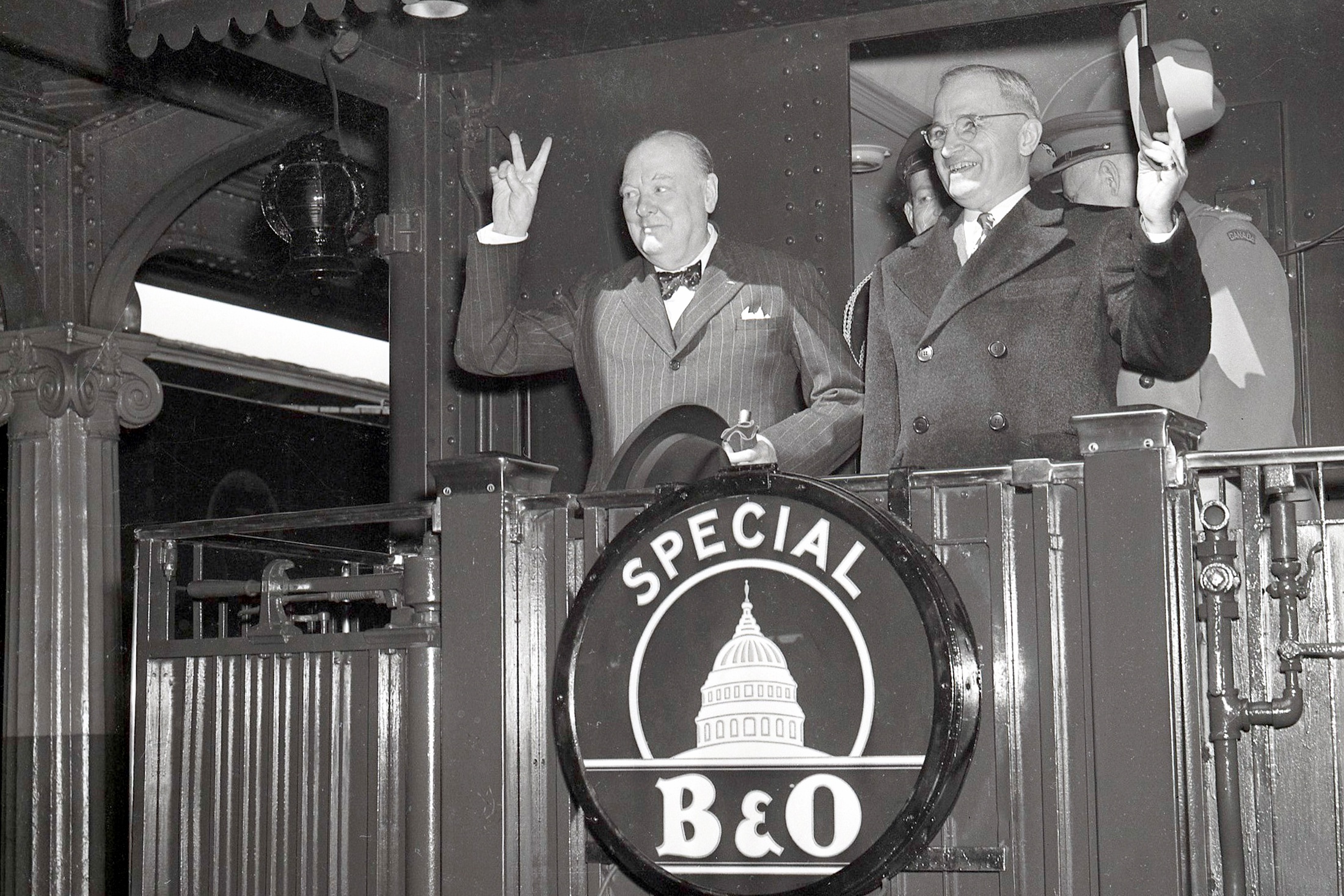 Уинстон Черчилль и президент США Гарри Трумэн после фултонской речи британца. 5 марта 1946 года. Фото: Icon and Image/Getty Images