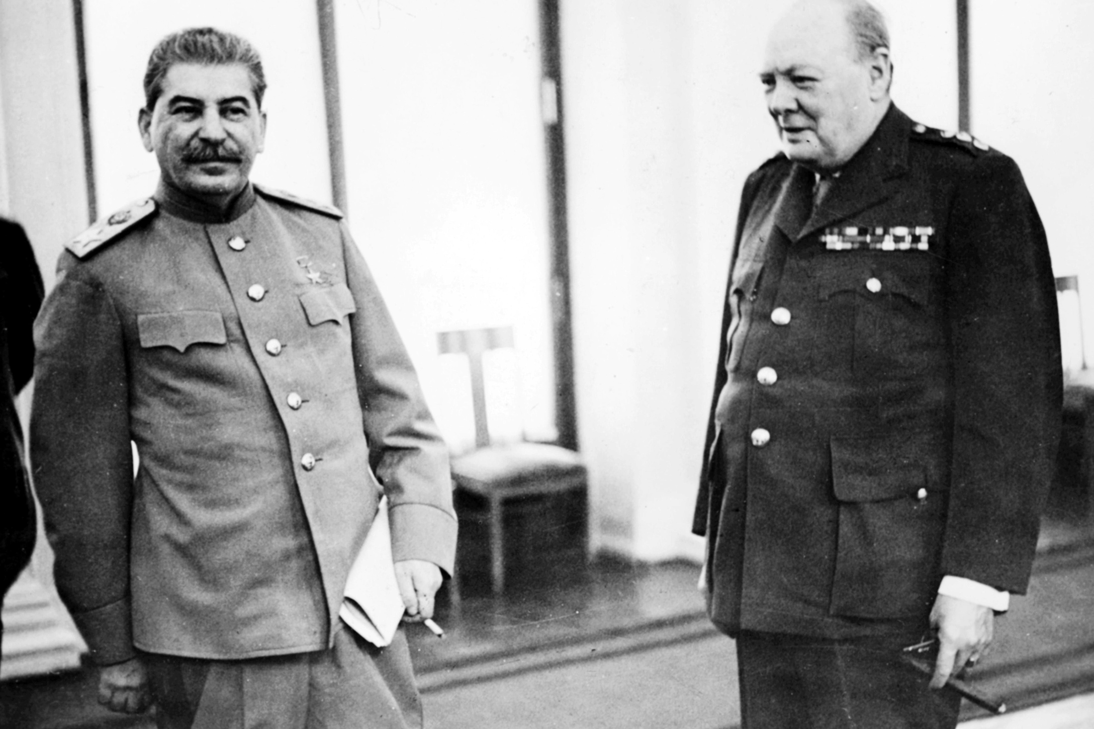 Сталин и Черчилль в конференц-зале Ливадийского дворца во время Ялтинской конференции. Февраль 1945 года. Фото: Sovfoto/Universal Images Group via Getty Images