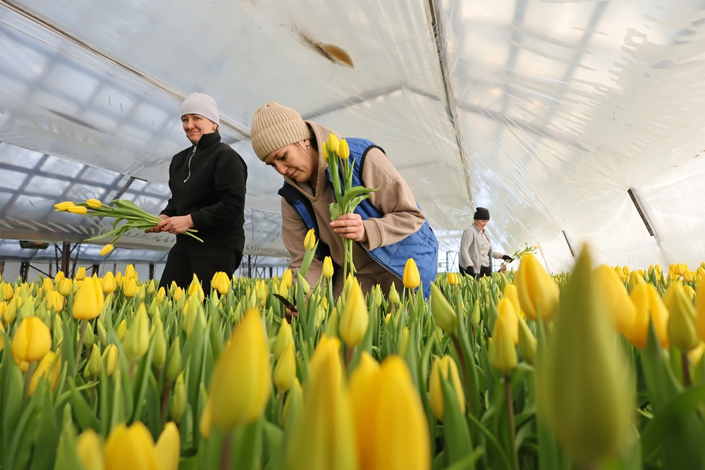 Цветочный бизнес укоренился и в теплицах села Арамашево Алапаевского района. Первый срез тюльпанов проводят еще к Дню всех влюбленных, а к марту выгонка достигает двух миллионов экземпляров.