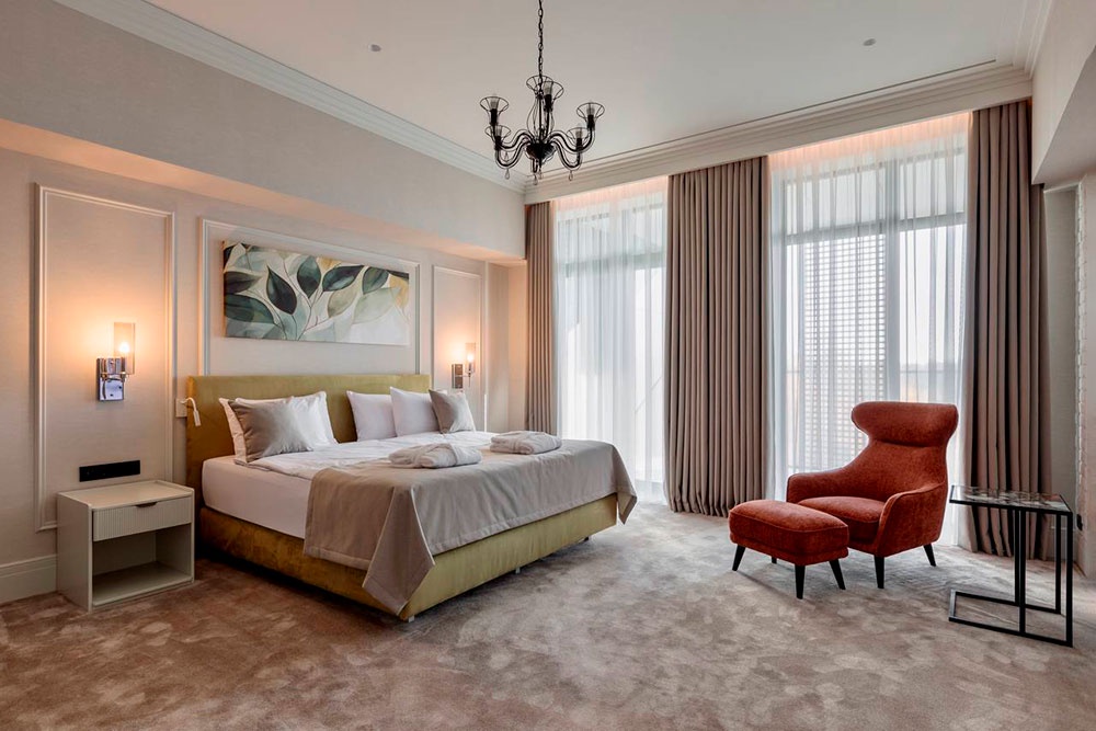Современные номера с продуманной эргономикой создают идеальное пространство для отдыха и восстановления. Каждый номер оборудован так, что на время лечения нет необходимости оставлять рабочие проекты, требующие контроля.