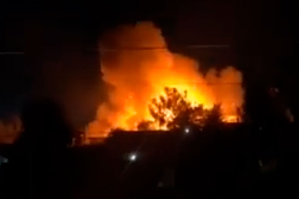 Съемка ведется очевидцем ночью из городской застройки. На фоне слышен характерный шум работающего генератора. В один момент мощная вспышка от удара по зданию, принадлежащему партии, освещает окрестности почти как днем, после чего раздается сильный взрыв. По короткой задержке между вспышкой и звуком взрыва можно сделать вывод, что оператор находился недалеко от места прилета.