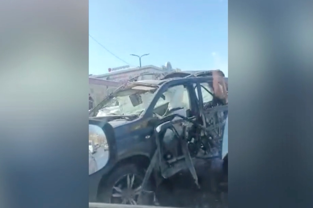 Из проезжающей мимо машины очевидцы сняли на видео последствия взрыва.