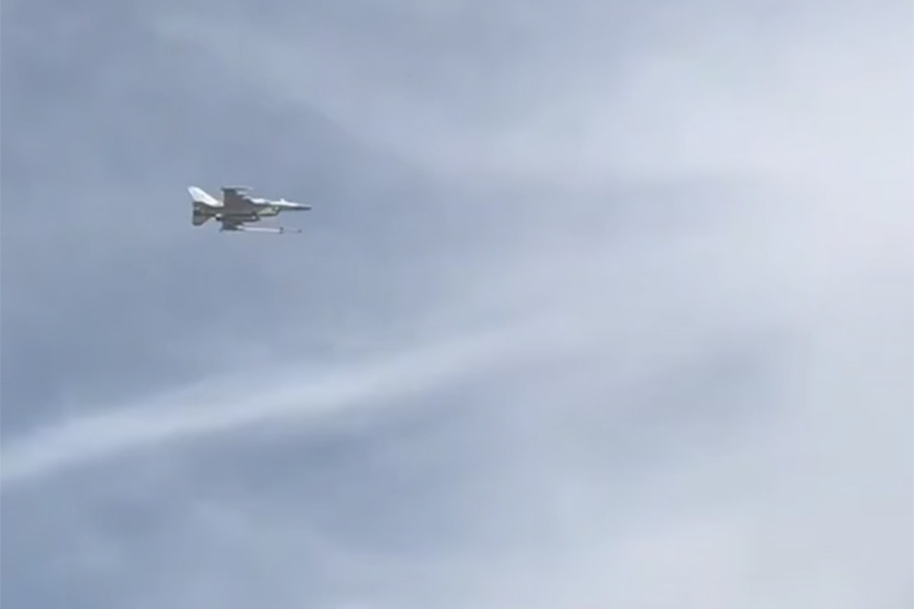 Туристы, не поднимаясь с песка, и скорее с веселым любопытством, чем со страхом, сняли пролетающий "по своим делам" беспилотник. Когда он скрылся из виду, в небе появился F-16.