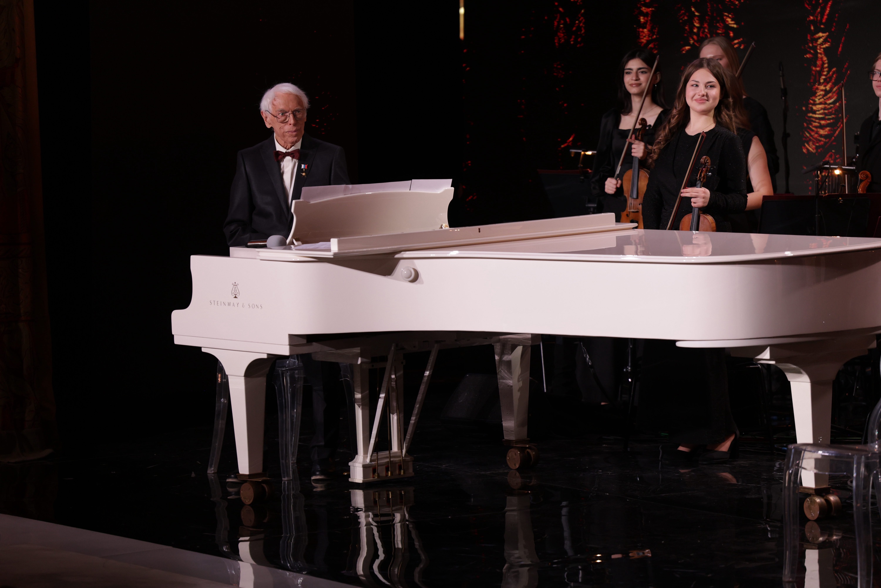 Настоящим украшением вечера стал выход к роялю Александры Пахмутовой. Легендарный композитор присоединилась к Александру Зацепину, чтобы исполнить с ним попурри на темы из кинолент Леонида Гайдая. Этот дуэт двух корифеев вызвал у публики неподдельное волнение.