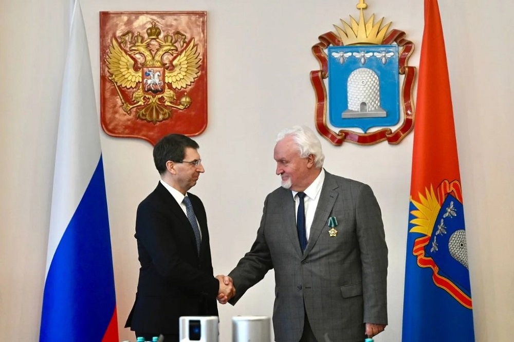 Игорь Щёголев и Евгений Первышов поздравили Евгения Матушкина с заслуженной наградой, отметив значительный вклад в развитие регионального законодательства.