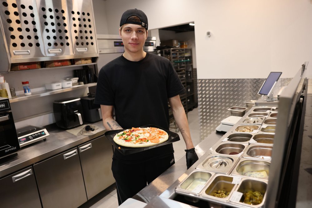 За работой поваров можно следить через стекло. "Умная" колонка подсказывает им время готовки и напоминает проверить сроки годности продуктов. "Очень удобно, не надо отвлекаться и держать в голове разные задачи", - говорит молодой повар Максим Романов. Парень не боится, что и его в этой пиццерии заменит робот, он уверен: за каждой железной машиной нужен контроль.