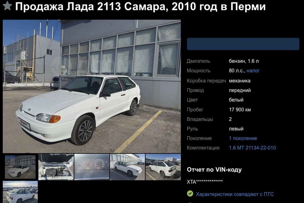 Как выяснила "Российская газета", в Перми на продажу выставили ВАЗ-2113, который с 2010 года проехал 17 900 км. За автомобиль, который сняли с хранения, просят 500 тысяч рублей.