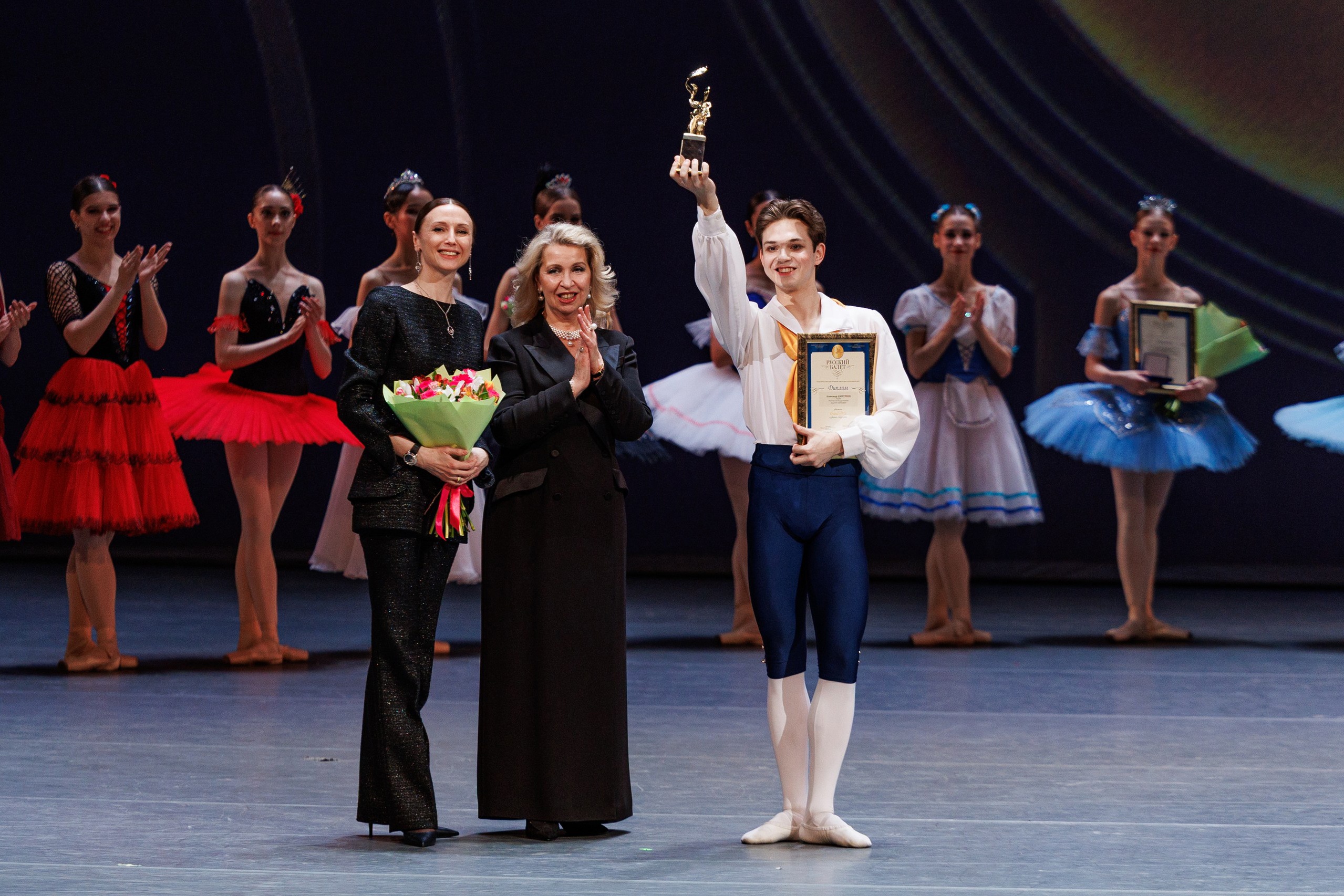 В этом году в финале выступило 27 участников из 13 учебных заведений. Обратило на себя внимание отсутствие - второй раз подряд - представителей Вагановской академии, и не хотелось бы возвращения старой неприятной традиции, когда ленинградцы-петербуржцы игнорировали конкурсы в Москве, а москвичи - в Петербурге. Лидеры же остались прежние. Максимальное количество наград, в отсутствие Вагановской академии, получила Московская академия хореографии. Гран-при досталось ее выпускнику Александру Дмитриеву, представителю большой балетной династии, в которой он первым станет артистом Большого театра. Эту же школу представляют обладатель мужской первой премии и впечатляющего прыжка Сергей Кринецкий и второй женской Элеонора Шайдуллина. Третьи премии достались Софье Тихоновой из Красноярского хореографического колледжа и Илье Милованову, представляющему Новосибирское хореографическое училище. Обе сибирские школы бесперебойно поставляют кадры ведущим театрам страны. Настоящим триумфом нынешний "Русский балет" оказался для хореографического училища при театре "Гжель", одного из самых молодых в стране: представшая балериной с тонким вкусом Виктория Соколова стала обладательницей первой премии, а Андрей Грачев - второй. Не меньше лауреатов запомнились сценически-заразительная Сайыына Пестерева из Якутской балетной школы имени Посельских (педагоги подобрали ей интересный нестандартный репертуар, но, к сожалению, не научили передавать разницу стилей), обладающая балеринской подачей Юлия Манджиева (Пермское хореографическое училище), Богдан Бояркин из Новосибирска.
