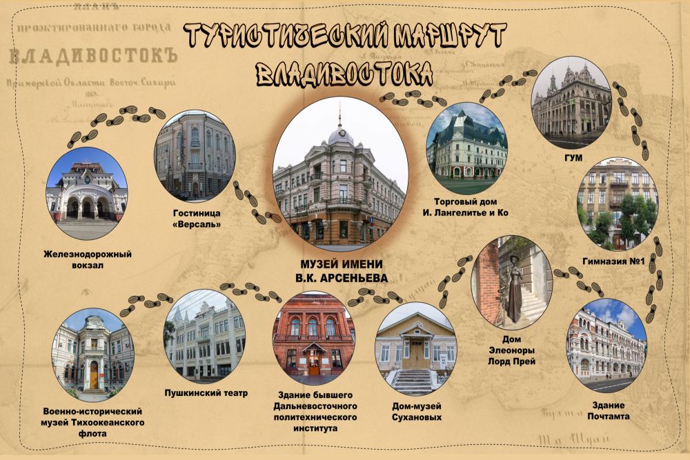 Приехав во Владивосток на железнодорожный вокзал и заселившись в историческую гостиницу "Версаль", стоит продолжить путешествие по улице Светланской и заглянуть на экскурсию в Музей-заповедник истории Дальнего Востока имени В. К. Арсеньева (улица Светланская, дом 20) - памятник архитектуры начала XX века. Жители Владивостока часто называют его просто Музеем Арсеньева.
