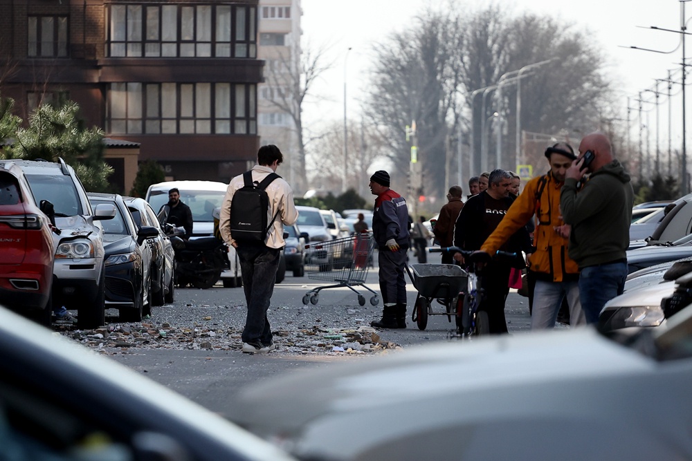 Упали обломки еще по трем адресам Краснодара. В Центральном внутригородском округе они повредили машины на парковке отеля, который находится совсем рядом с администрацией города. На стоянке своими глазами видела свыше десятка автомобилей с треснувшими стеклами и выбитыми бамперами. Также повреждены кровля и стена ресторана в этом округе. В самом здании выбиты окна.