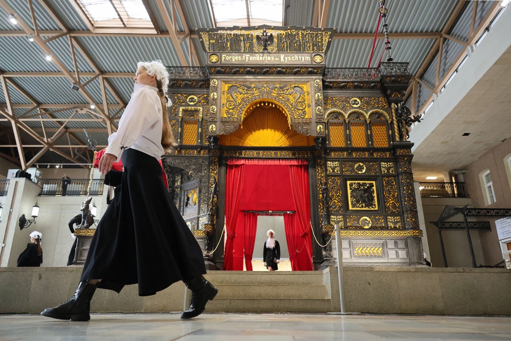 Юные модели в разнообразных вариациях черного, подчеркнутого пеной белоснежных кружевных вставок, спускались со ступеней всемирно известного Каслинского павильона и замирали, позируя фотографам. Им предстояло передать контрасты цвета, графичность линий и форм вещей - и их неожиданную, почти оксюморонную перекличку с отлитым из чугуна кружевом стен старинного павильона.