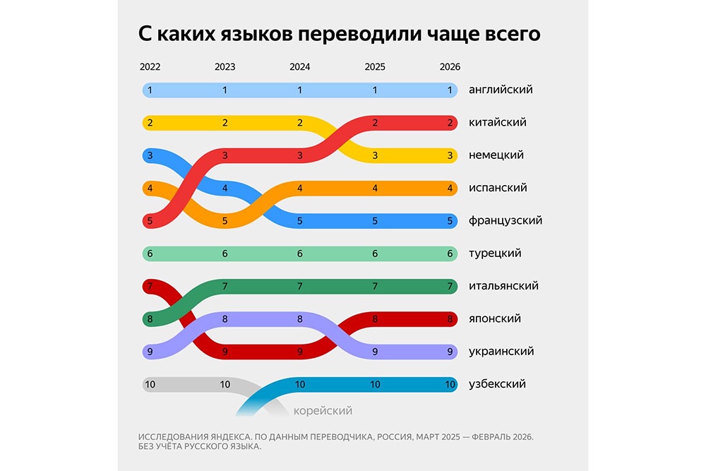 Исследование основано на данных сервиса "Яндекс Переводчик", доступного в мобильном приложении и веб-версии. Технологии перевода сервиса используются и в других продуктах компании, в том числе для закадрового перевода видео и распознавания текста через умную камеру. По данным компании, только в 2025 году пользователи перевели более 1,2 миллиарда изображений.