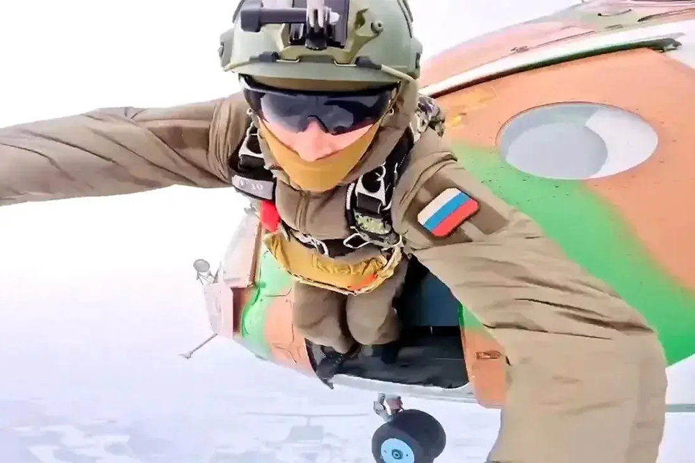 Спецназовцы десантировались из вертолета Ми-8 с высоты 1100 метров. Бойцы использовали парашютные системы, позволяющие выполнять прыжки на скорости самолета до 350 км/ч.