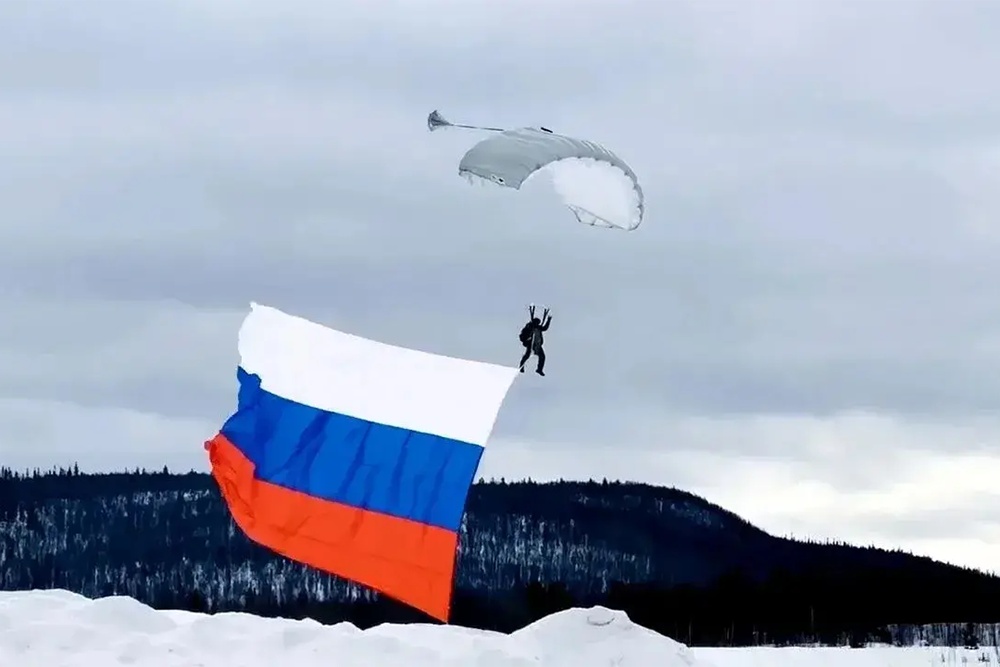 "Военнослужащие и сотрудники спецназа, выполняющие задачи в Арктической зоне, отработали высадку боевых групп с помощью парашютов", - говорится в комментарии к видео.