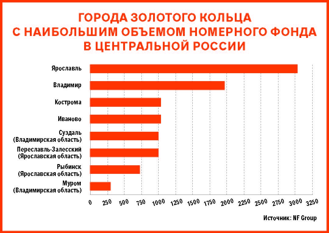 До расширения маршрута объем номерного фонда Золотого кольца составлял 10,3 тысячи номеров, а за счет присоединения еще 49 населенных пунктов он вырастет в два раза - до 20,8 тысячи номеров.