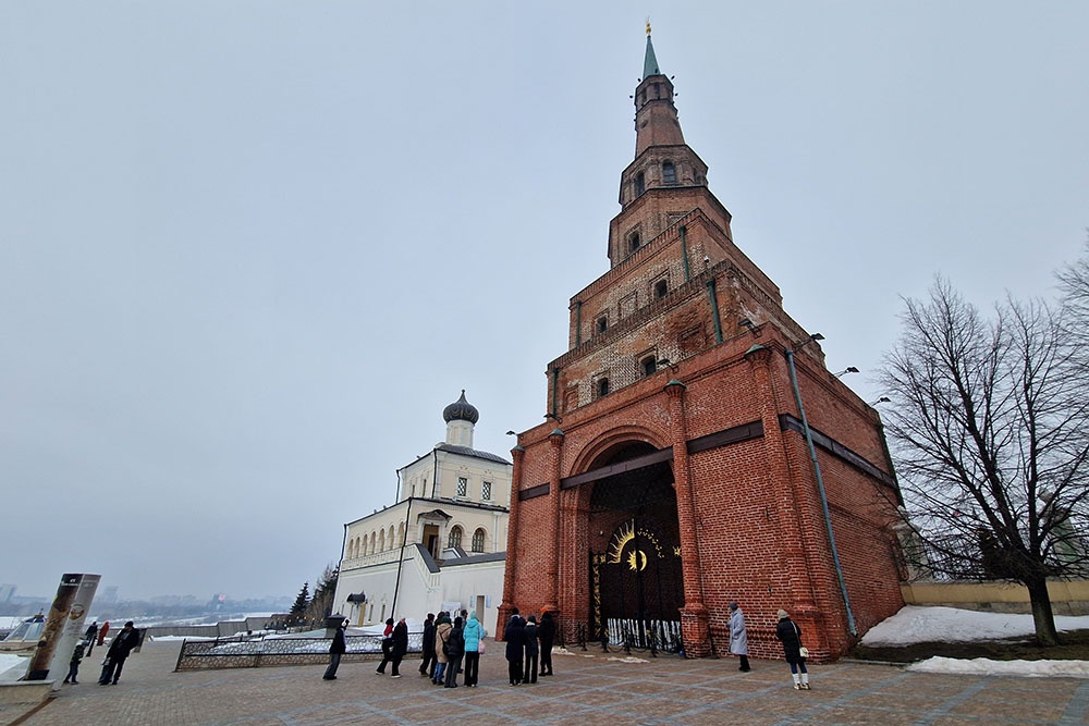 За башней располагается бывший губернаторский дворец, где сейчас находится резиденция главы Татарстана Рустама Минниханова. А перед башней можно увидеть стеклянные саркофаги, накрывающие ханские мавзолеи. Часть захоронений относится к периоду Золотой Орды. В них покоятся потомки Чингисхана.