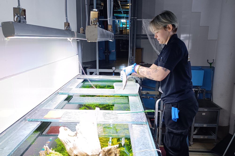 - На данный момент в наших аквариумах живут около трех тысяч гидробионтов. Самое важное в адаптации - это, конечно, перевести рыбу на корм, которым она будет питаться после перехода из естественной среды обитания. Сначала их помещают в карантин, внимательно смотрят, насколько хорошо она питается. Если все в порядке, то рыбу переводят в аквариум, - рассказала главный инженер-рыбовод Музея Мирового океана Татьяна Аксенкина.