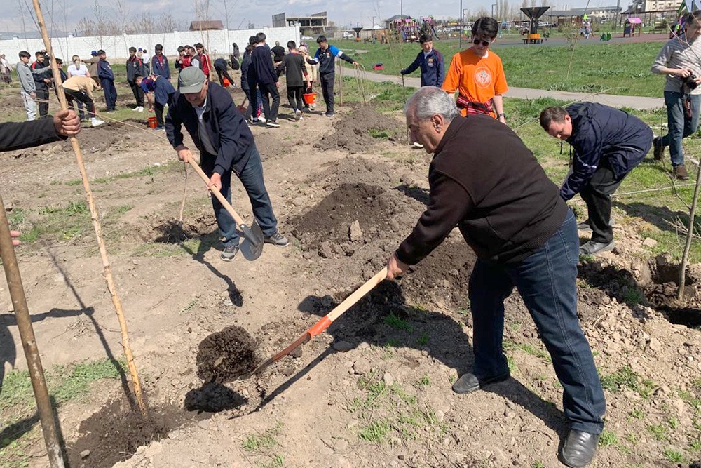 Как уже было сказано, одним из непосредственных участников мероприятия стало Центральноазиатское представительство "Российской газеты". Директор Дмитрий Евлашков и сотрудники редакции посадили несколько десятков кустов сирени, установив памятную табличку. И теперь деревья от "РГ" растут и радуют кыргызстанцев во всех семи областях республики.