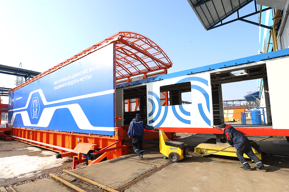 Вагоны для Минского метро выполняются в фирменной сине-белой ливрее. Как пояснили нам на заводе, их производство и сборка практически ничем не отличаются от других вагонов. При этом для Минского метрополитена делали специальный кузов вагона, чтобы подогнать его под параметры закрытых платформ.