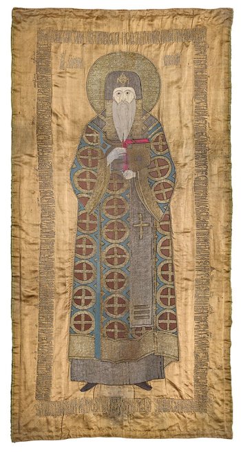 Святой митрополит Алексий. Покров. Вклад великого князя Симеона Бекбулатовича в Чудов монастырь Московского Кремля. Тверь, 1581; атлас - Италия, XVI в.; тафта - Восток, XVI в.