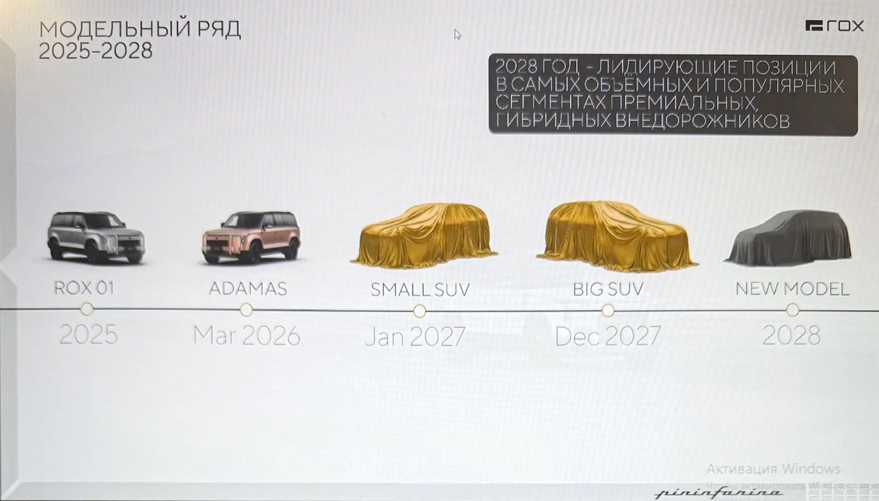 Как выяснила "Российская газета", марка Rox планирует расширение модельного ряда. Так, судя по слайду с дилерской конференции бренда, который оказался в распоряжении редакции, в январе 2027 года дебютирует компактный кроссовер, а в декабре - большой SUV. Кроме того, в 2028 году выйдет новая модель. Что это будет за автомобиль - пока загадка. Rox также собирается занять лидирующие позиции на рынке в сегменте премиальных гибридных кроссоверов.