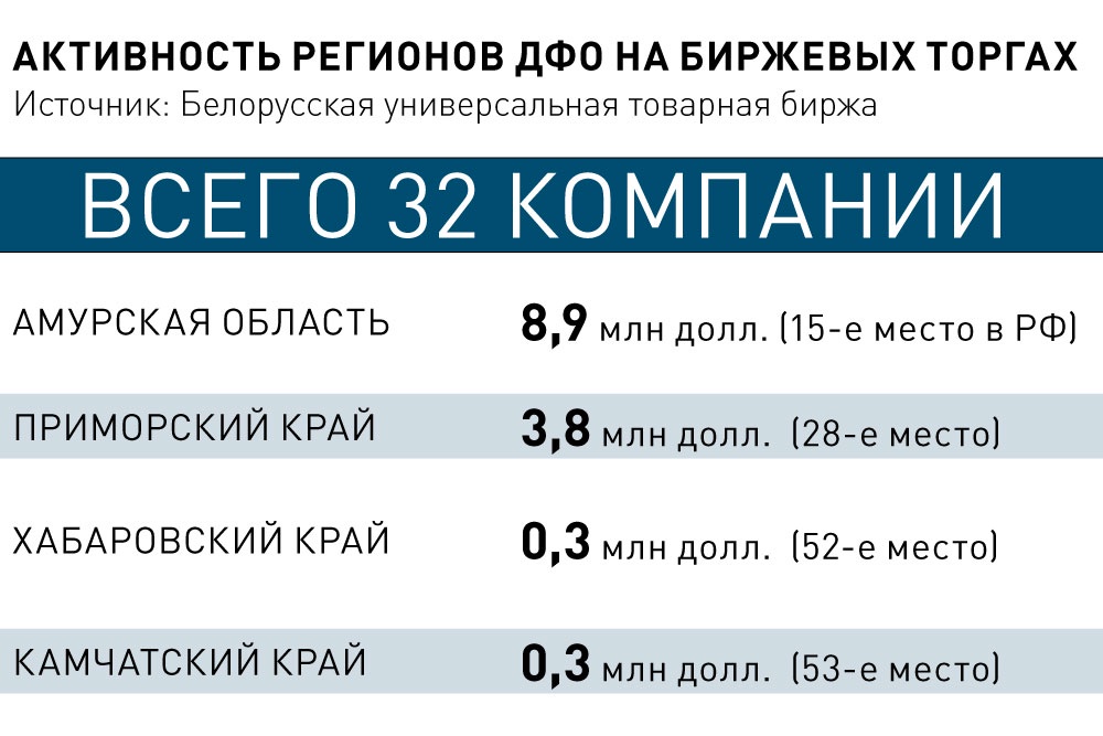 Дипломаты дружественного государства не раз призывали бизнес ДФО обратить внимание на инструментарий биржи. Так, генконсул Республики Беларусь во Владивостоке Игорь Сокол предложил шире использовать ее возможности не только для импортных поставок, но и для расширения экспортного потенциала, а также для межрегиональной торговли внутри России.
