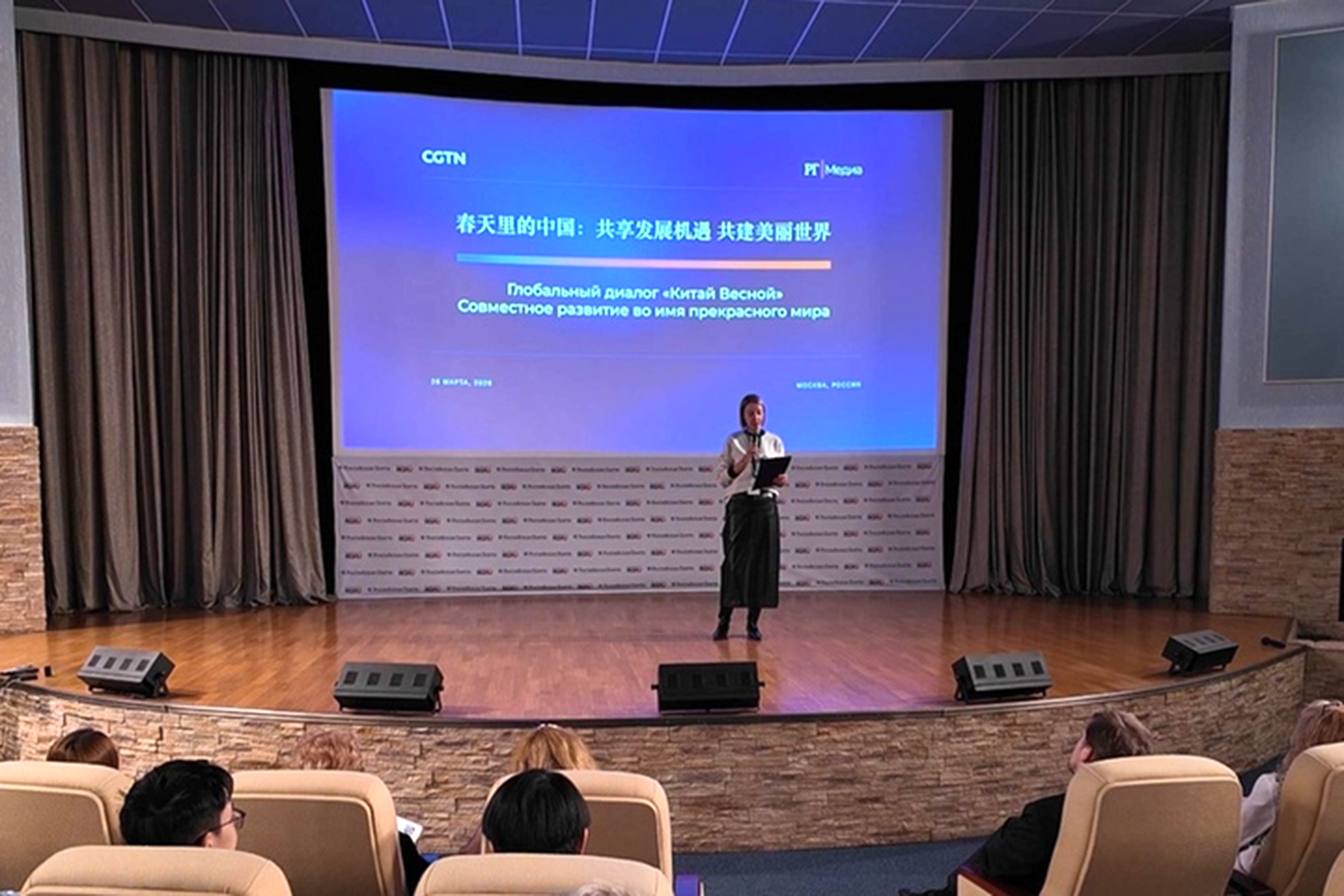 Мероприятие началось с приветственной речи генерального директора Медиакорпорации Китая Шэнь Хайсюна, записанной для глобального диалога "Весна в Китае - КНР делится своими возможностями с миром". В ней он рассказал об итогах "двух сессий", которые прошли в марте в Пекине, а также подчеркнул важность международного сотрудничества для реализации концепции "Сообщества единой судьбы человечества". Затем зрители посмотрели один из выпусков цикла телелекций "Идеи Си Цзиньпина об экологической цивилизации", который был посвящен заботе о сохранении окружающей среды, в частности борьбе с изменением климата, восстановлению почв и очищению водных объектов.