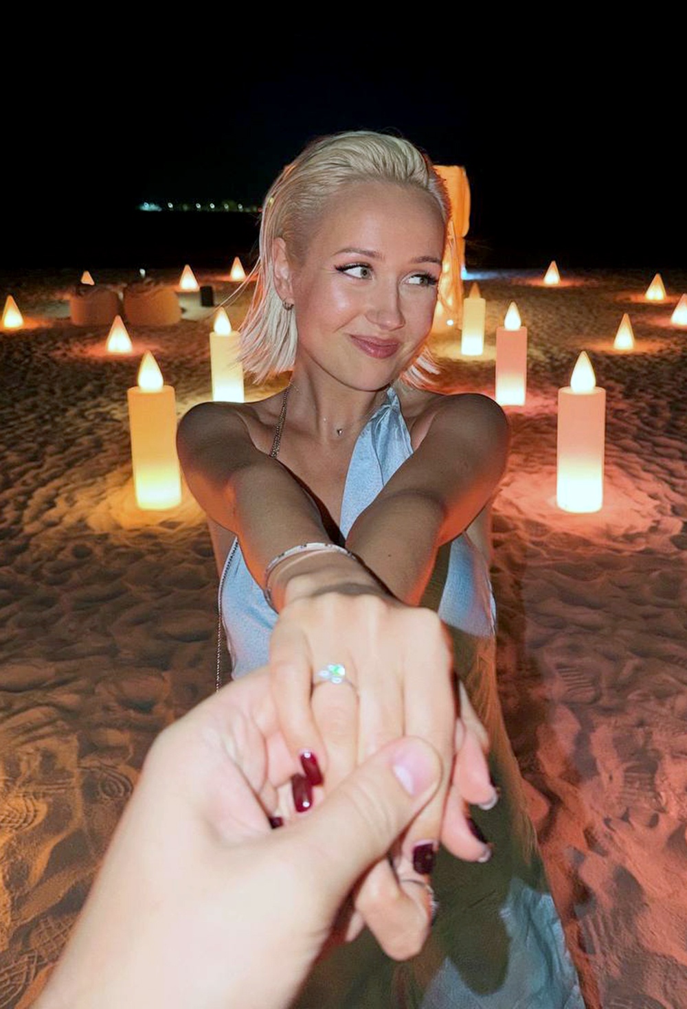 Счастливая артистка также опубликовала фотографию с кольцом. Судя по снимку, предложение руки и сердца было сделано во время совместного отпуска пары.