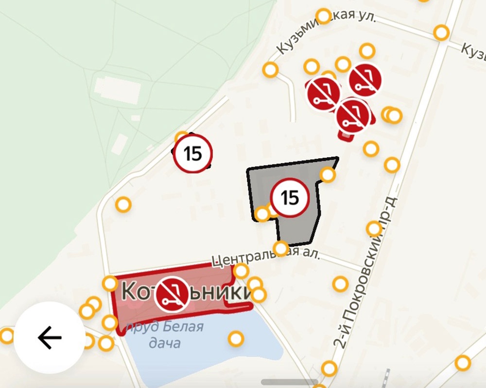 Федеральные информагентства анонсировали введение запрета на работу сервисов кикшеринга в Котельниках с 4 апреля. Однако по состоянию на 14 часов субботы мне ничего не мешало взять в аренду средство индивидуальной мобильности. В приложениях Яндекса, Whoosh и Urent запретной зоной была лишь прогулочная аллея вокруг пруда "Белая дача", а на территории крупного квартала жилых многоэтажек "Оранж парк" введено ограничение 15 километров в час.