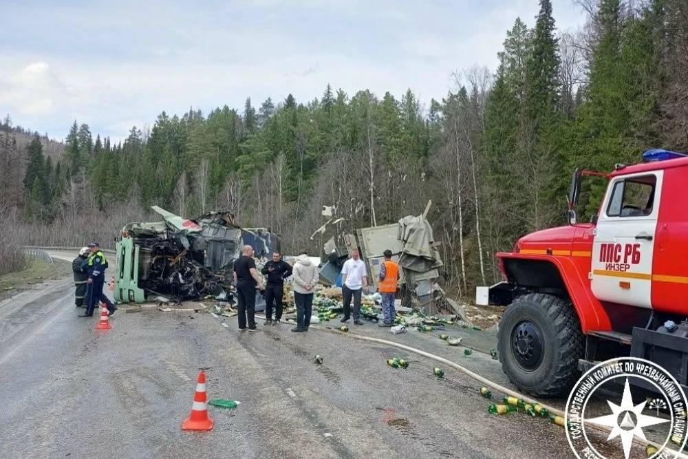 Как рассказали в ГИБДД Республики Башкортостан, на дороге Уфа - Инзер - Белорецк столкнулись две фуры MAN. Водитель одного из них не справился с управлением, в итоге автомобиль опрокинулся и врезался во встречный грузовик.