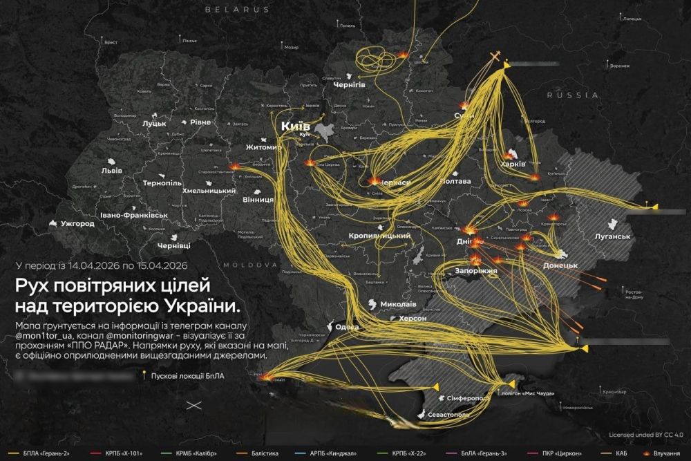 По данным украинской ПВО, в налете в основном участвовали БПЛА "Герань". Кроме них, на схеме отмечены маршруты четырех баллистических ракет "Искандер" - они стартовали попарно из Краснодарского края и Ростовской области, а прилетели в Днепропетровск.