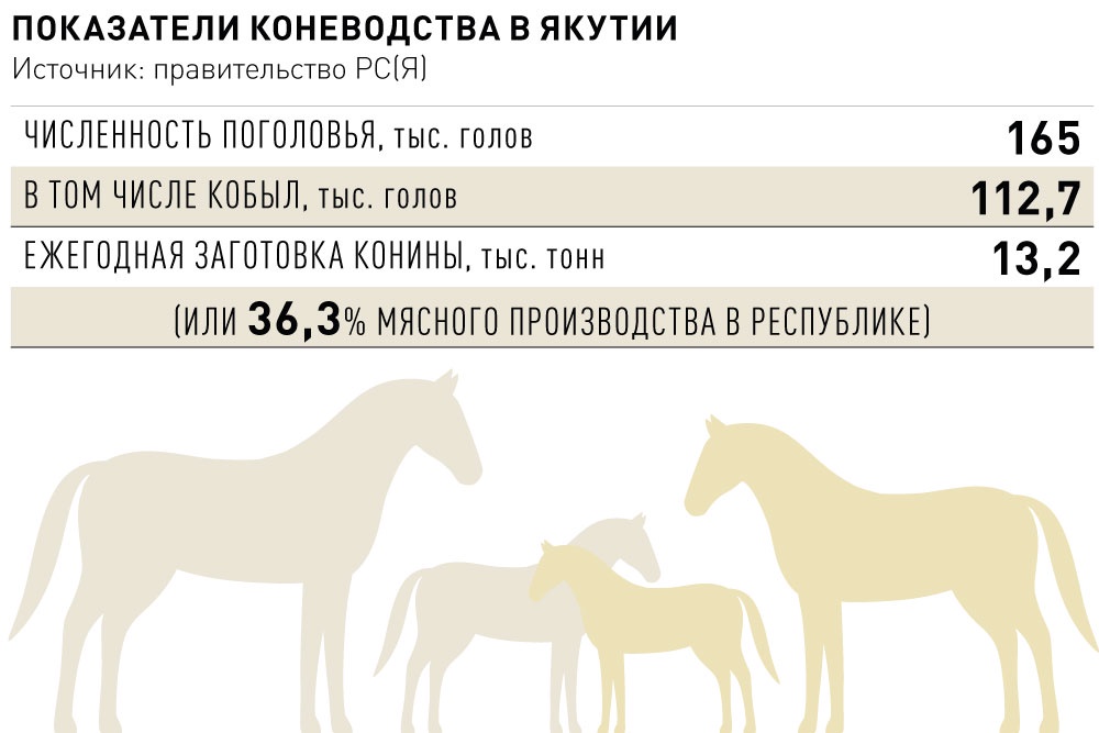 К окончанию первой половины апреля ожеребилось всего 0,9 процента кобыл. В оставшиеся дни поголовье лошадей в Якутии будет стремительно расти, и поздней осенью, в период забоя, сократится почти на то же количество. Жеребята за лето и осень успеют нагулять жир и достичь веса около 100 килограммов. Содержание жира в этом возрасте оптимальное для употребления в пищу, в отличие от взрослой особи.