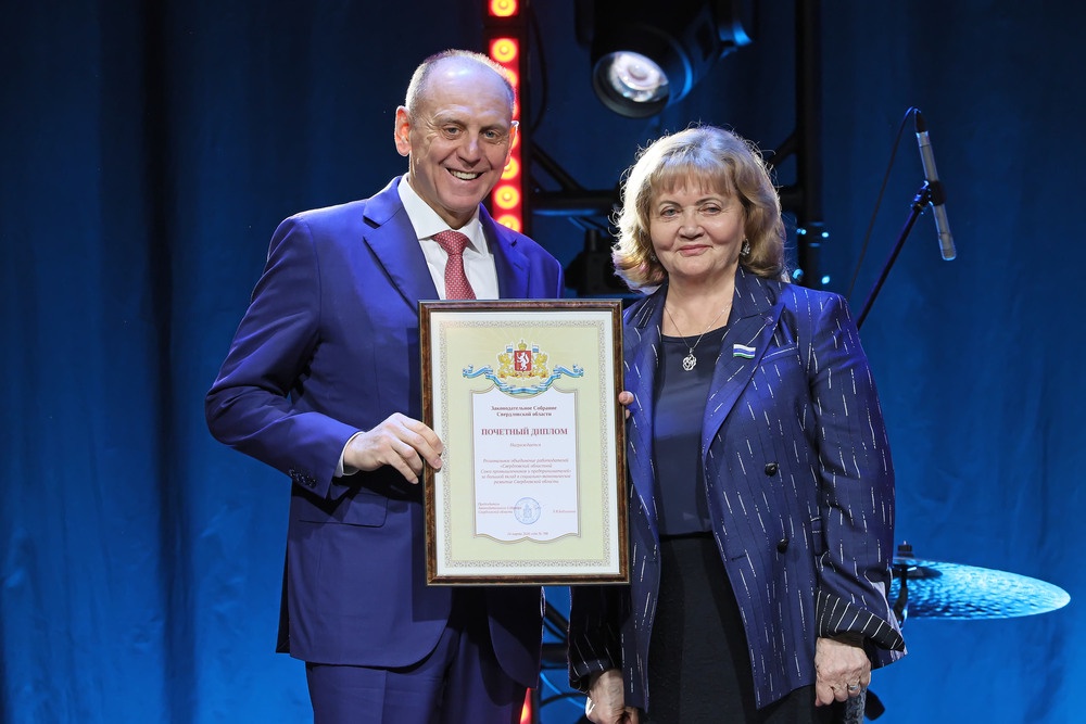 Она поздравила с юбилейной датой президента областного бизнес-объединения Дмитрия Пумпянского, руководителей компаний и вручила членам организации награды Заксобрания Свердловской области.