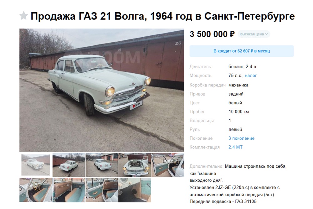 "Волгу" ГАЗ-21 с "японским сердцем" выставили на продажу в России: Очень дорого