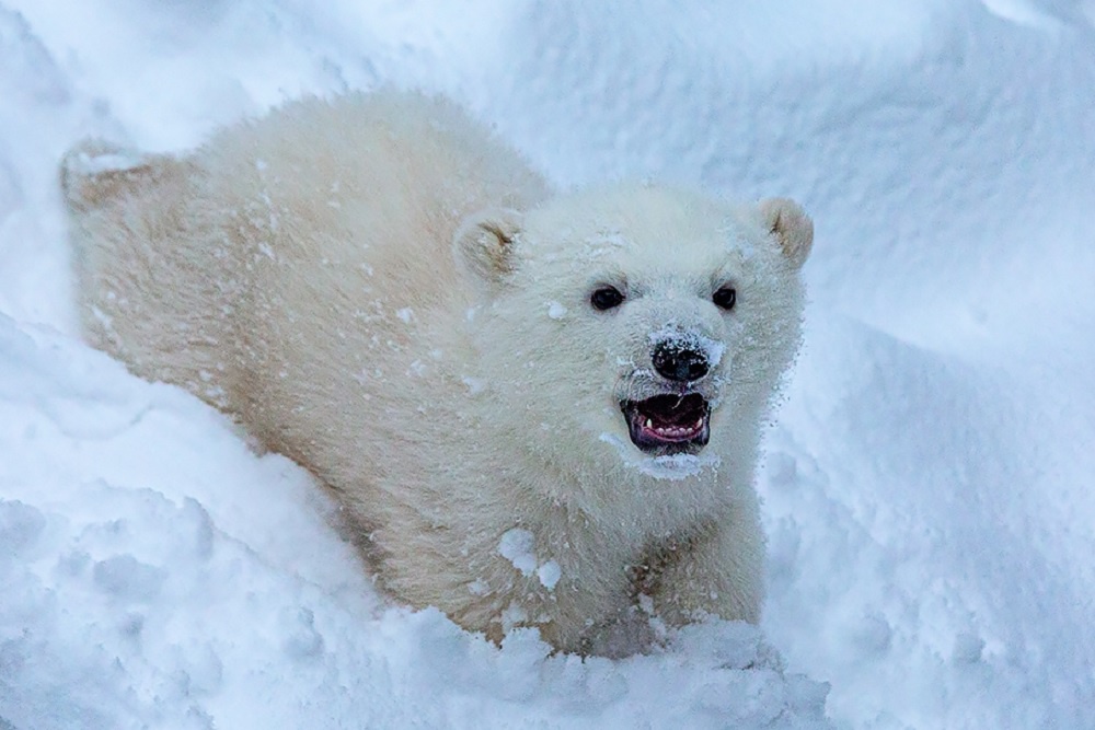 Как рассказали в зоопарке, очаровательный малыш появился на свет у пары белых медведей Кая и Герды в декабре прошлого года. Сейчас медвежонок уже вовсю изучает вольер и собственные возможности, в том числе, как долго удастся устоять на задних лапах.