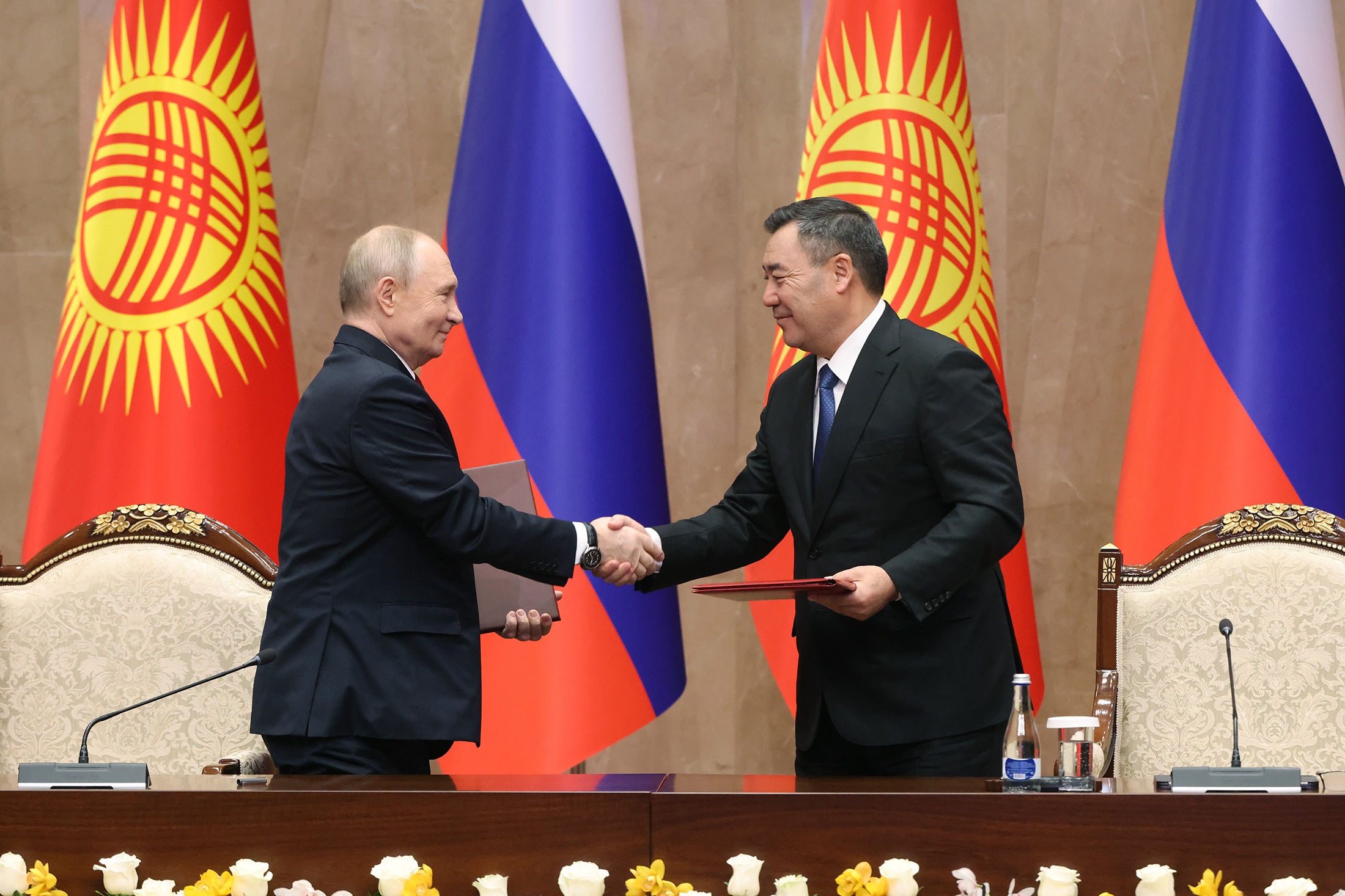 В свою очередь Жапаров поблагодарил Путина за теплый прием. "Нас связывают исторические узы дружбы. Мы были и остаемся стратегическим партнером и главным союзником Российской Федерации", - подчеркнул он. Жапаров также добавил, что Россия и Киргизия - активные члены во многих международных организациях, в том числе в ШОС.