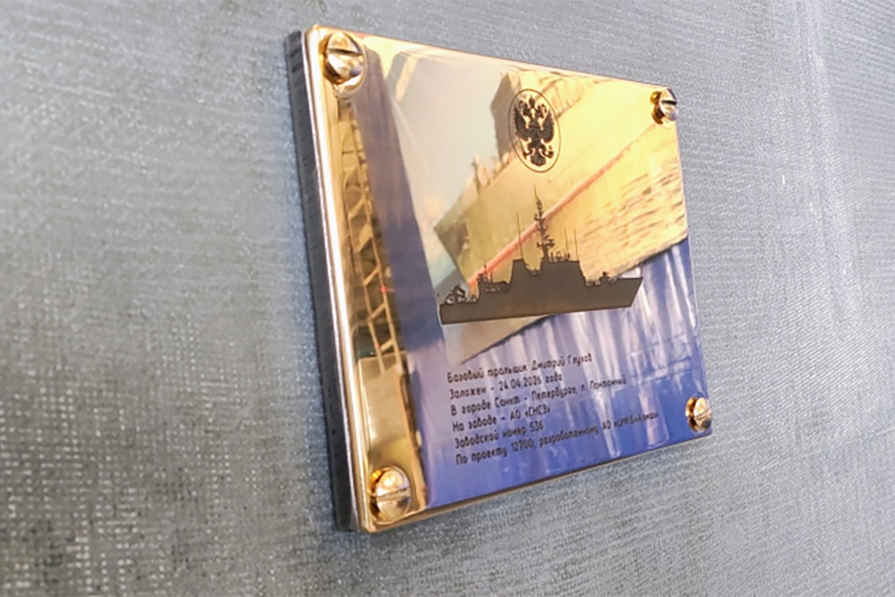 По традиции к элементу килевого набора будущего тральщика прикрепили закладную доску с памятной информацией о дате и месте постройки. Секция заняла свое место на корпусе корабля. В закладке корабля участвовал правнук Дмитрия Андреевича Глухова ‒ капитан 3-го ранга Андрей Назаров.