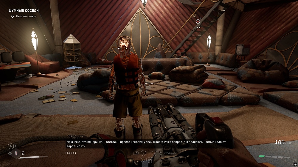 С головоломками тоже не все гладко. На некоторых можно застрять, потому что требования к их решению проговариваются парой строк в диалогах, которые можно легко пропустить мимо ушей из-за внезапной перестрелки. В одном случае пришлось фотографировать экран и отправлять его нескольким нейросеткам - они с решением местных ребусов помочь не смогли. В итоге пришлось лезть за видеопрохождением в интернет. В Uncharted 4, вышедшем 10 лет назад, персонажи начинали диегетически подсказывать игроку решение загадок, если тот застревал. У Нечаева полно компаньонов - но пользы от них в этом плане ноль. Да, околосорокалетний гейминг выглядит именно так - не нужно отовсюду убирать "желтую краску".