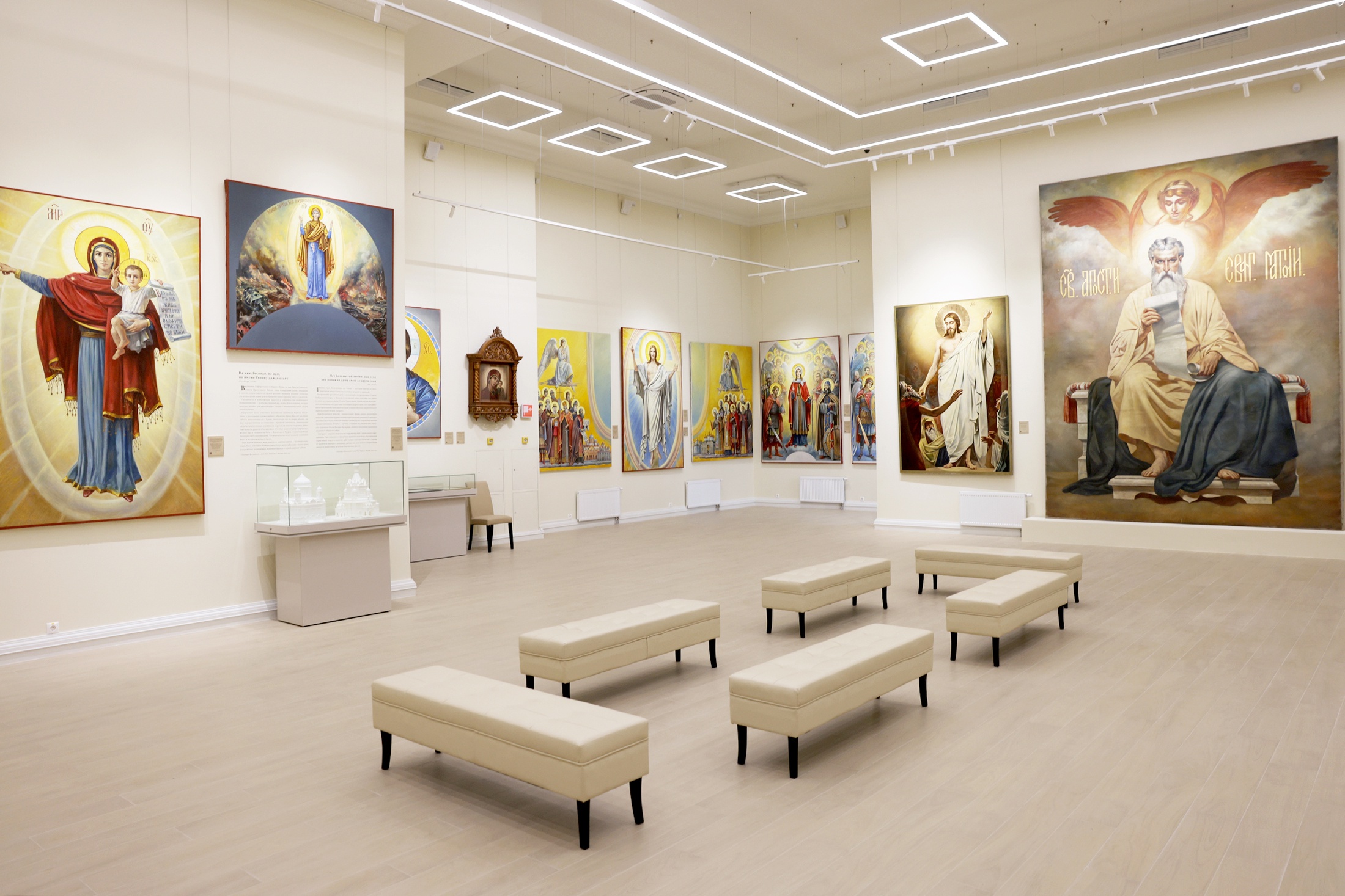 В здании, исполненном в неоклассическом стиле, четыре этажа, полностью занятых полотнами и эскизами. Архитектура галереи создавалась в тесном сотрудничестве с художником, который сам решал, где и как разместить свои творения. Первый этаж занимают два зала - историческая живопись и сцены наших дней. Картины в обоих залах посвящены победам в войнах, а первый зал носит название "Мы русские - с нами Бог" и отражает, как Господь в непростые времена всегда сопровождал Россию.