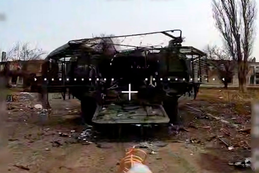 Появилось видео ударов FPV-дронов и "Ланцета" по БТР М1117 из США