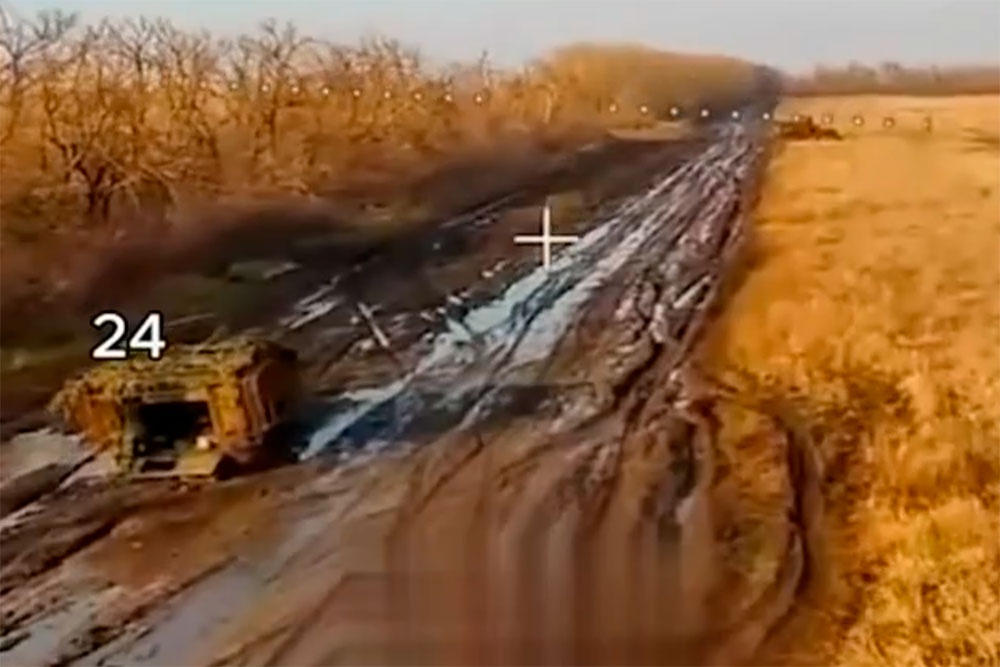 Дрон снял участок дороги с 27 единицами сожженной техники ВСУ