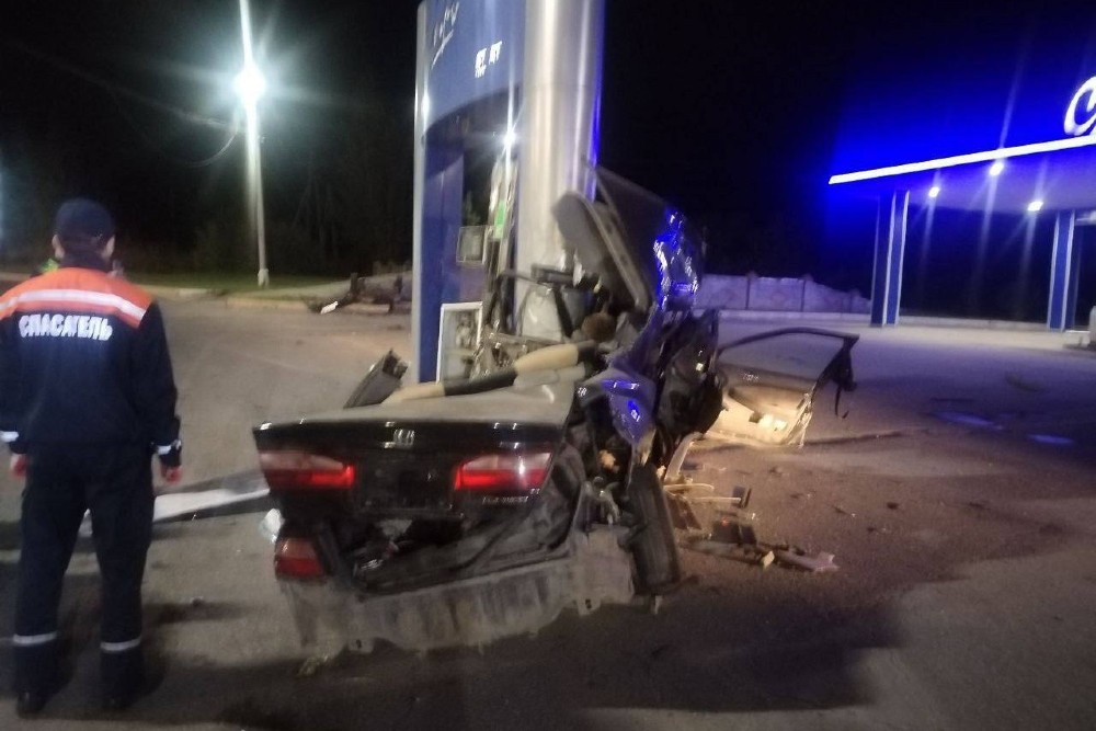 Легковушку разорвало после столкновения с АЗС, водитель погиб