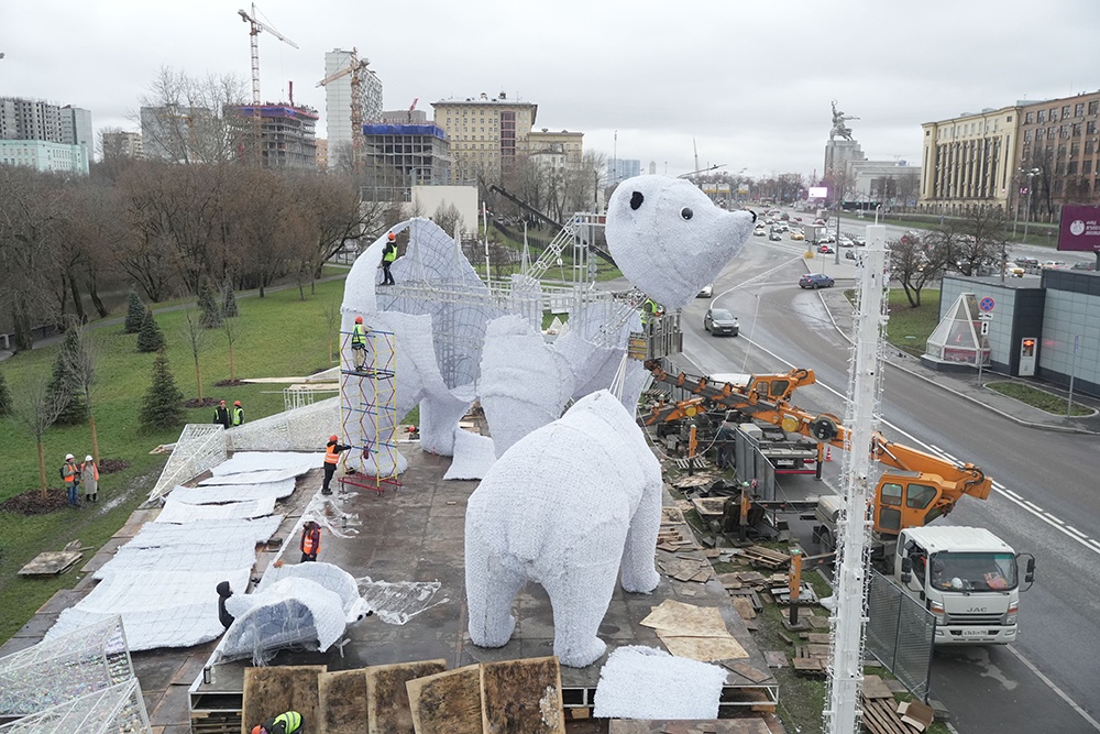 У Ростокинского акведука завершается монтаж инсталляции "Полярные медведи"