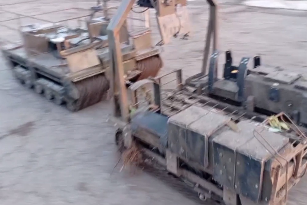Появилось видео, как НРТК "Курьер" конвоирует "пленного" робота ВСУ