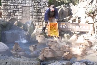Для капибар в японском зоопарке устроили горячие цитрусовые ванны